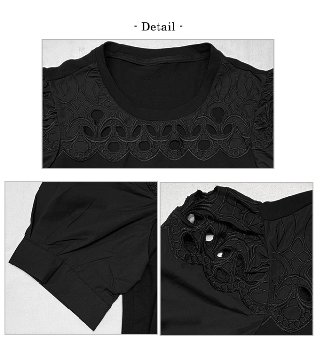| 【表記サイズ】 F (フリー) 肩幅:約33.5cm バスト:約90cm 袖丈:約30.5cm 着丈:約59.2cm ※平置き採寸の為若干のブレがございます。 |