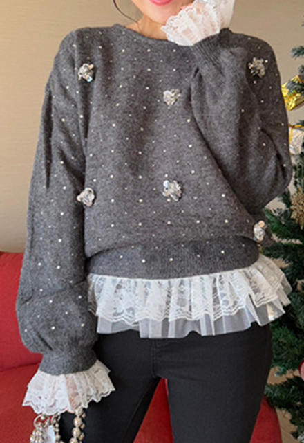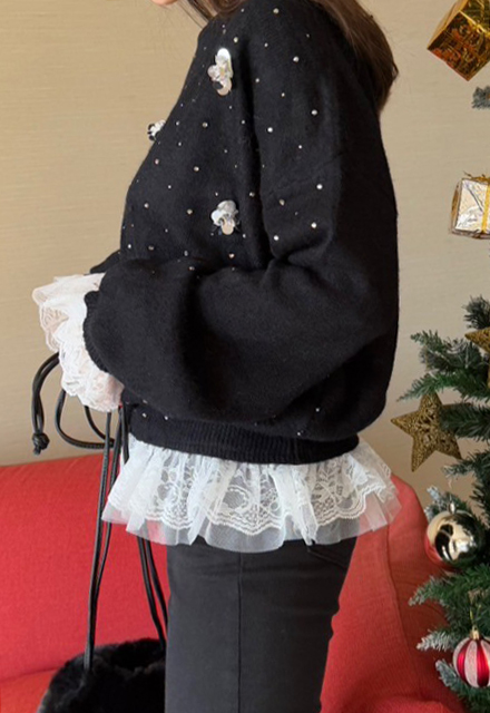 | 【表記サイズ】 F (フリー) 肩幅:約61cm バスト:約128cm 袖(レース含む):約54.5cm 着丈(レース含む):約60cm ※平置き採寸の為若干のブレがございます。 |