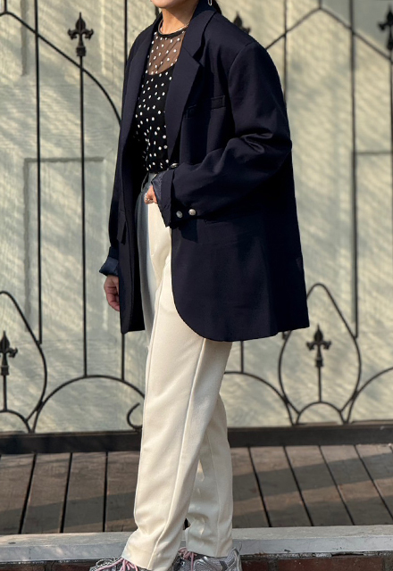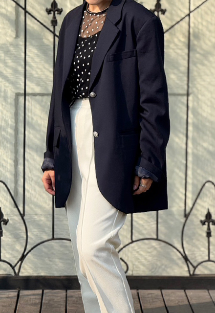 | 表地:ポリエステル100% 裏地:ポリエステル100% 【裏地】あり 【伸縮性】なし 【透け感】なし 【肩パッド】両サイドあり 【フェイクポケット】右あり 【ポケット】両サイドあり 【洗濯取り扱い】 手洗い 40℃ 漂白剤使用禁止 タンブル乾燥禁止 日陰で平干し アイロン 110℃ ドライクリーニング石油系のみOK(弱) ウエットクリーニングOK(弱) |