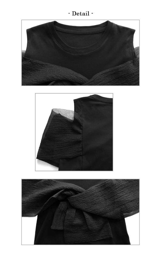 | 【表記サイズ】 F (フリー) 肩幅:約34cm バスト:約93cm 袖丈:約15.5cm 着丈:約56.5cm ※平置き採寸の為若干のブレがございます。 |