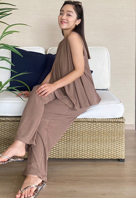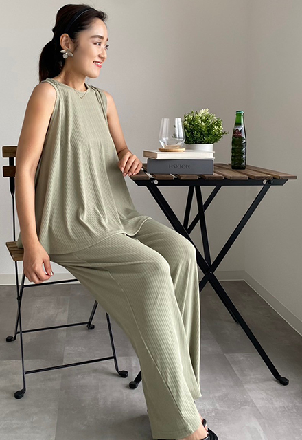 | 【表記サイズ】 F (フリー) [トップス] 肩幅:約29.5cm バスト:約108cm 着丈:約62.5cm [パンツ] ウエスト(ゴム):約67cm ヒップ:約96cm わたり:約32cm 総丈:約92.5cm ※平置き採寸の為若干のブレがございます。 |