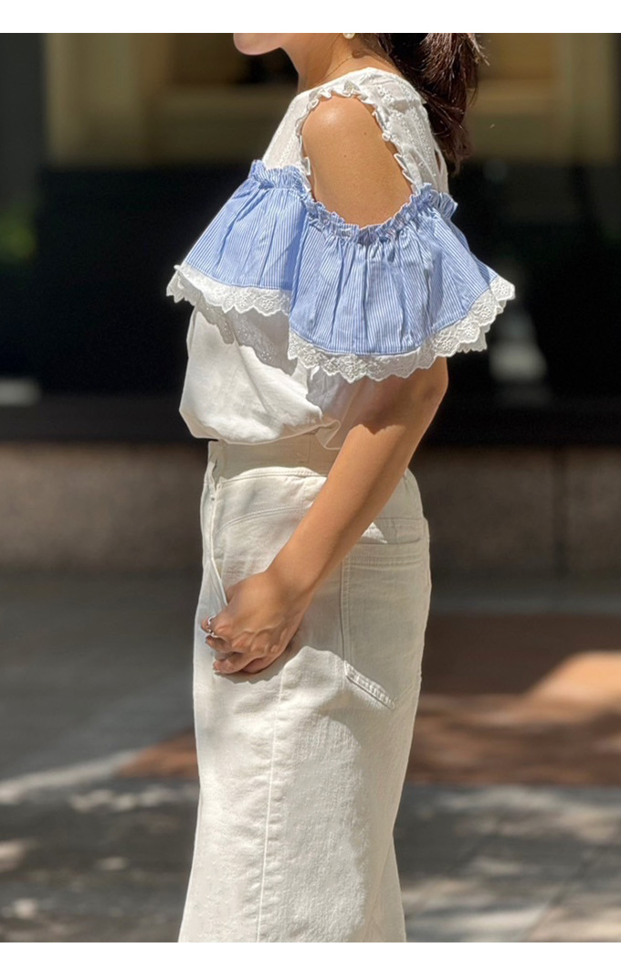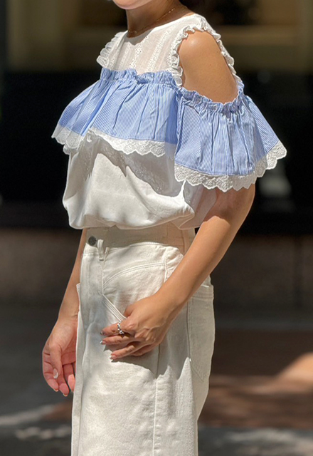 | ポリエステル95% ポリウレタン5% 別布:ポリエステル100% レース綿100% 【裏地】なし 【伸縮性】あり 【透け感】あり |